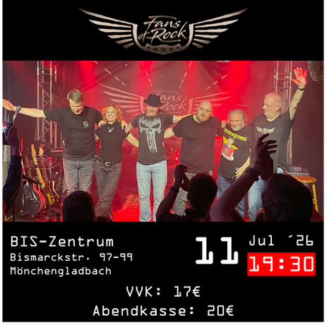 mit Leidenschaft und energie bringen wir die songs, die eine ganze generation geprägt haben, auf die Bühne. Nirvana, Pearl Jam, Red Hot Chili Peppers, Rage against the Machine, Green Day, Lenny Kravitz - wer diese Bands mag, ist bei den Konzerten der Fans of Rock" genau richtig.
